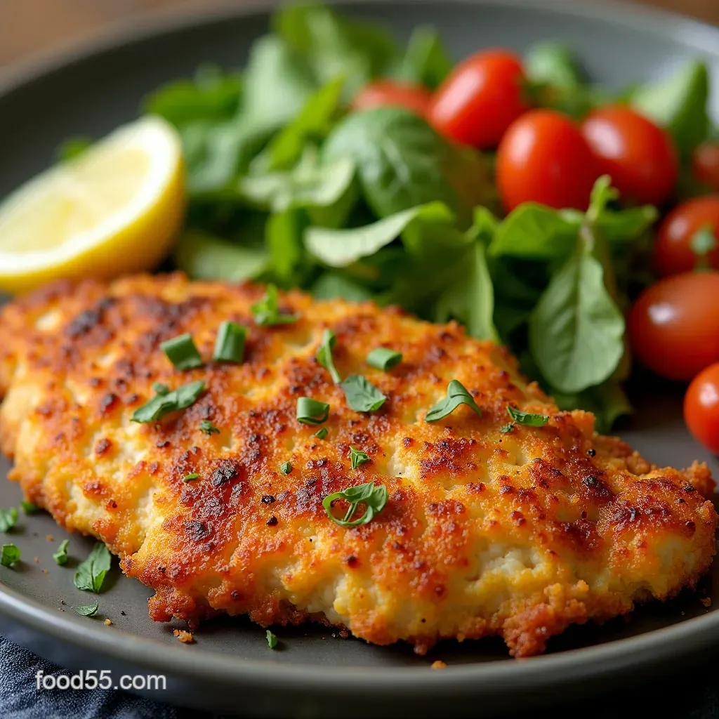 Honestly, this makes a great Healthy weeknight chicken dinner . The crust stays crisp. The salad feels bright. Try it with a Mediterranean cucumber tomato olive salad .
