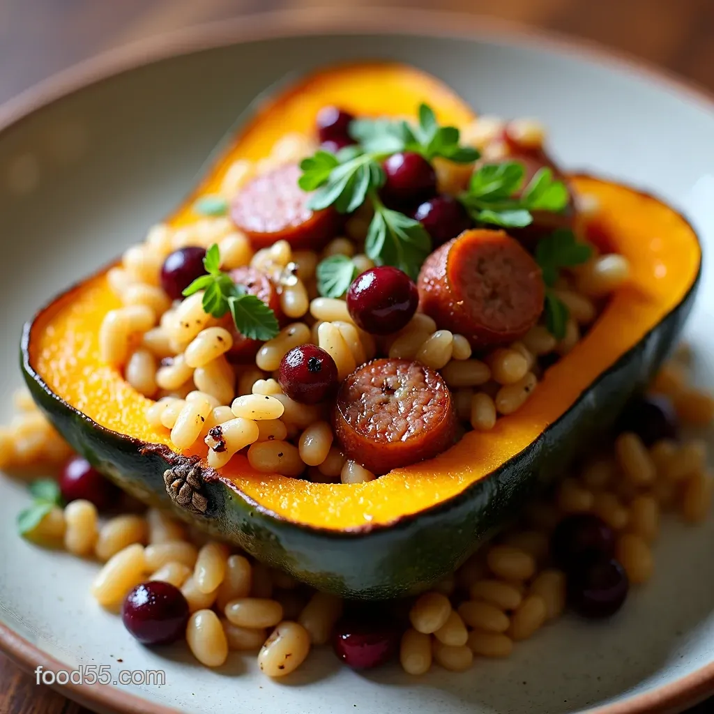 Autumnstuffed Butternut Squash with Sausage Wild Rice Cranberries