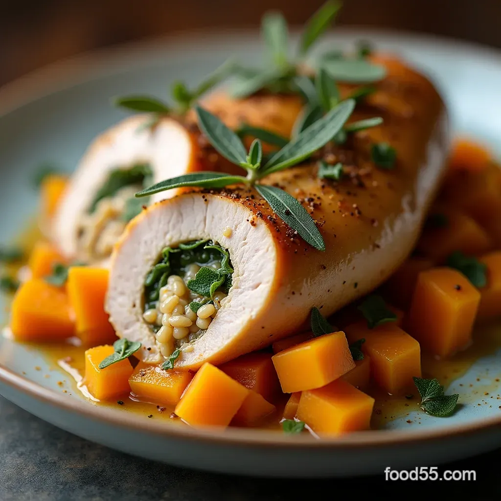 Autumnal Hug Boneless Stuffed Turkey Breast with Sage Butternut Squash
