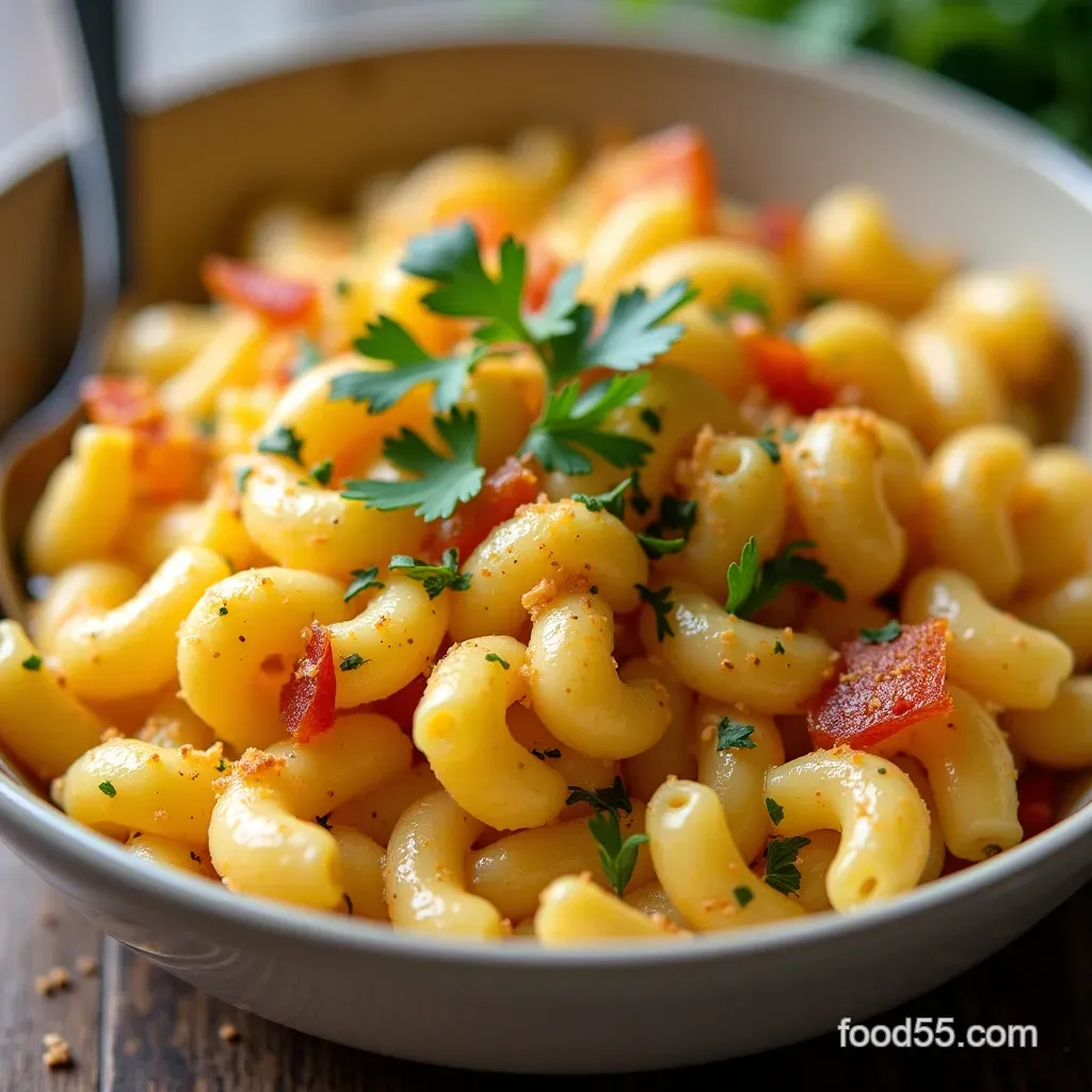Alternatively, for a lighter protein, consider sautéed, diced smoked sausage or even crumbled Italian sausage mixed in with the pasta.