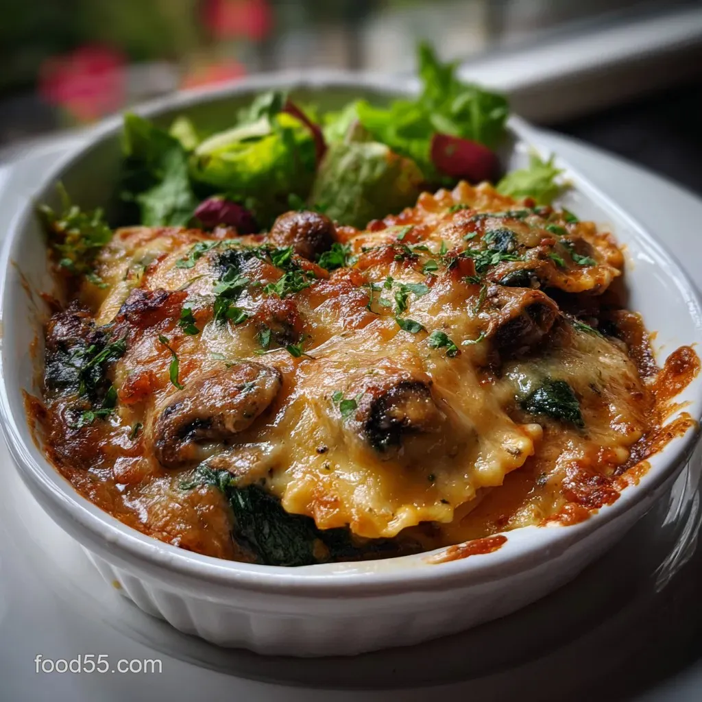 If you’re looking for a meal that feels like a warm hug but looks like a professional chef made it, this Cheesy Mushroom Ravioli Casserole with Spinach is your new best friend.