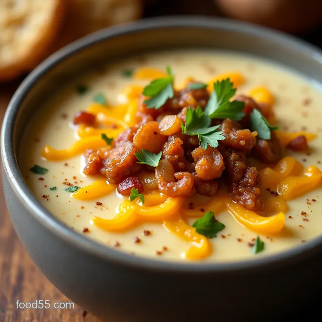 Once the cream and milk have been added and heated through, the final seasoning is critical. Always taste the soup after the cheese has melted in, as the cheese adds significant salt. Adjust the salt and freshly ground black pepper as needed.