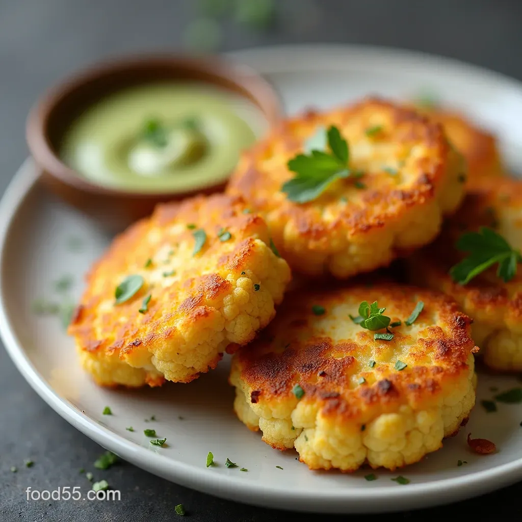Golden Cauliflower Parmesan Fritters with Zesty Herb Dip