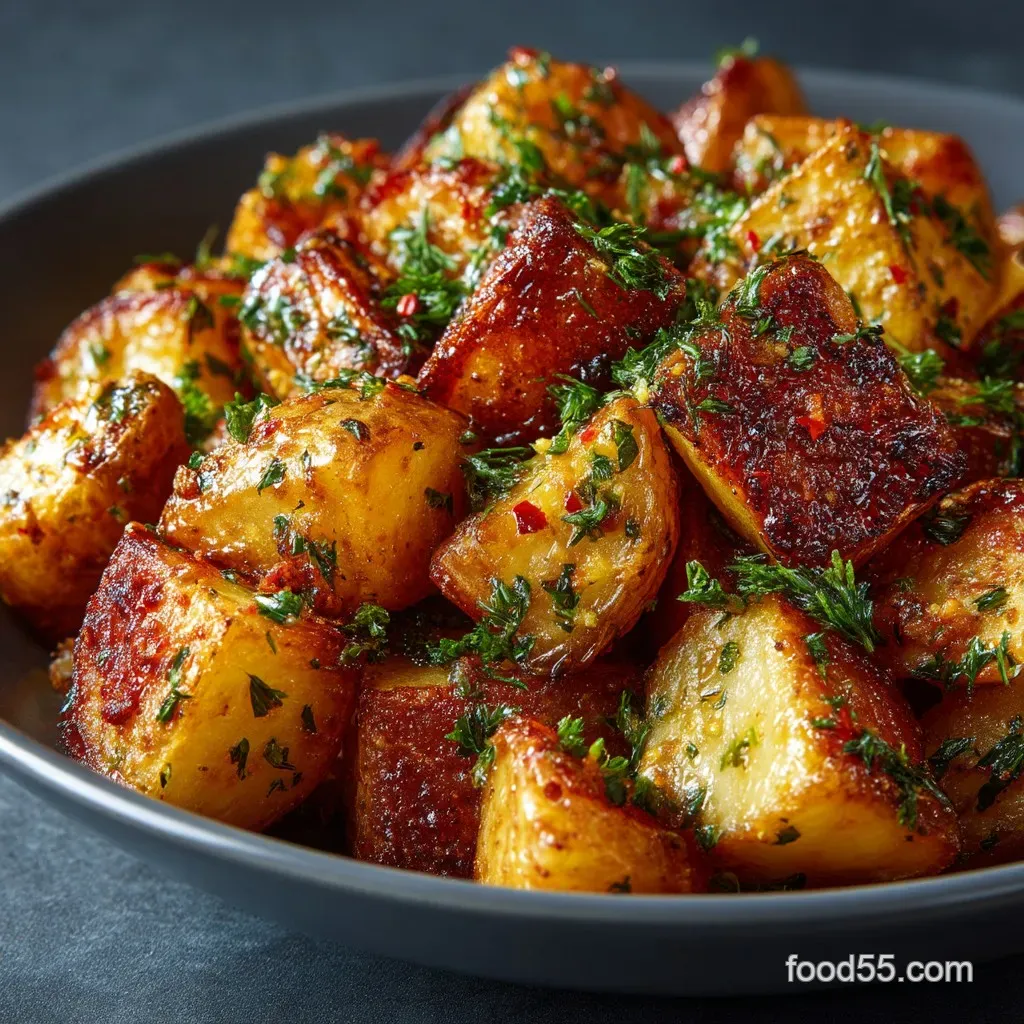 Alternatively, for a deeper, more earthy flavor profile often desired in Autumn Potato Recipes , add three sprigs of fresh rosemary and two crushed cloves of garlic to the pan during the initial high heat roast.