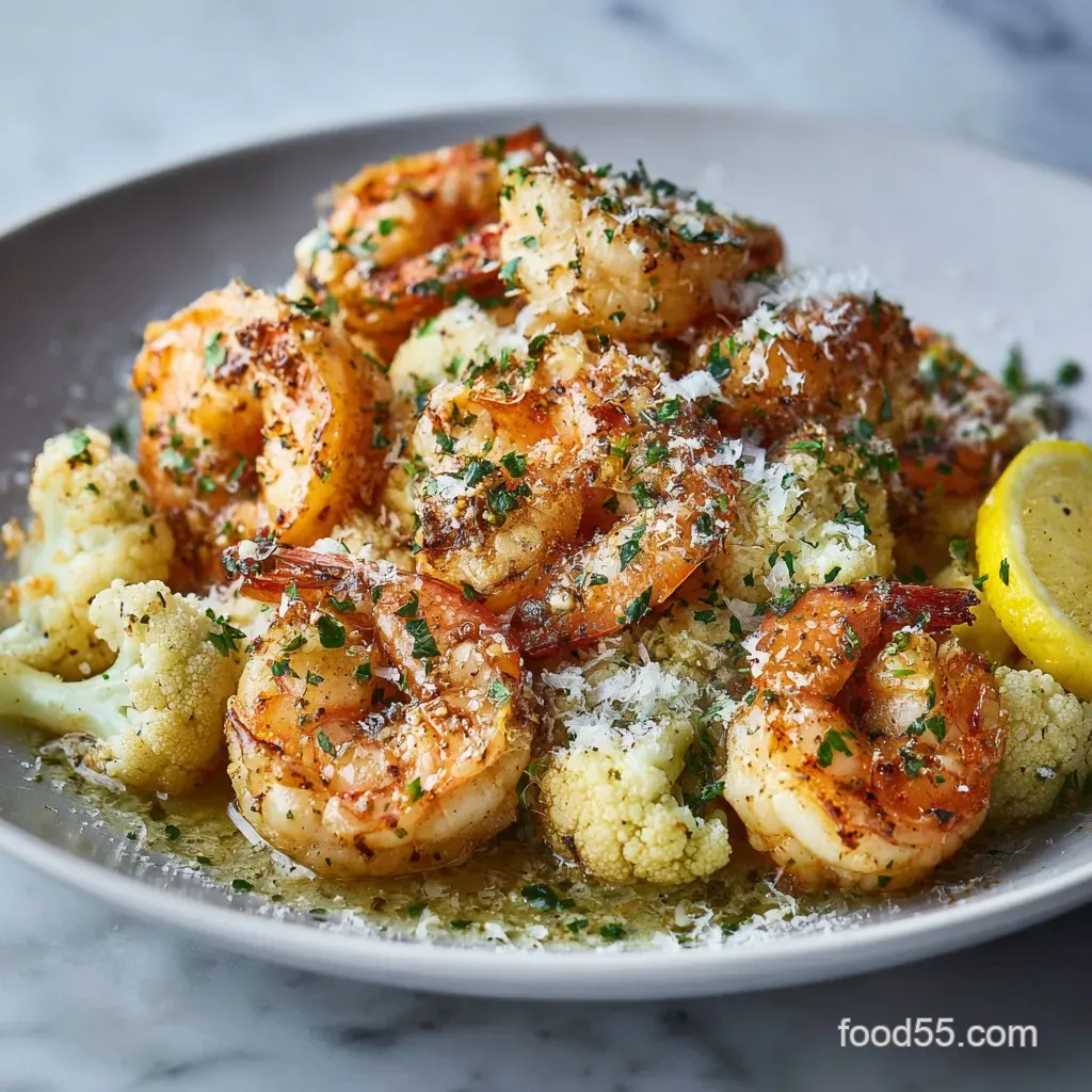 Garlic Butter Shrimp Lemon Parmesan Cauli Rice