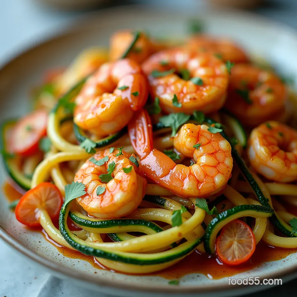 - The Essence of Speedy Summer Cooking: Zucchini Noodles with Garlic Spicy Shrimp