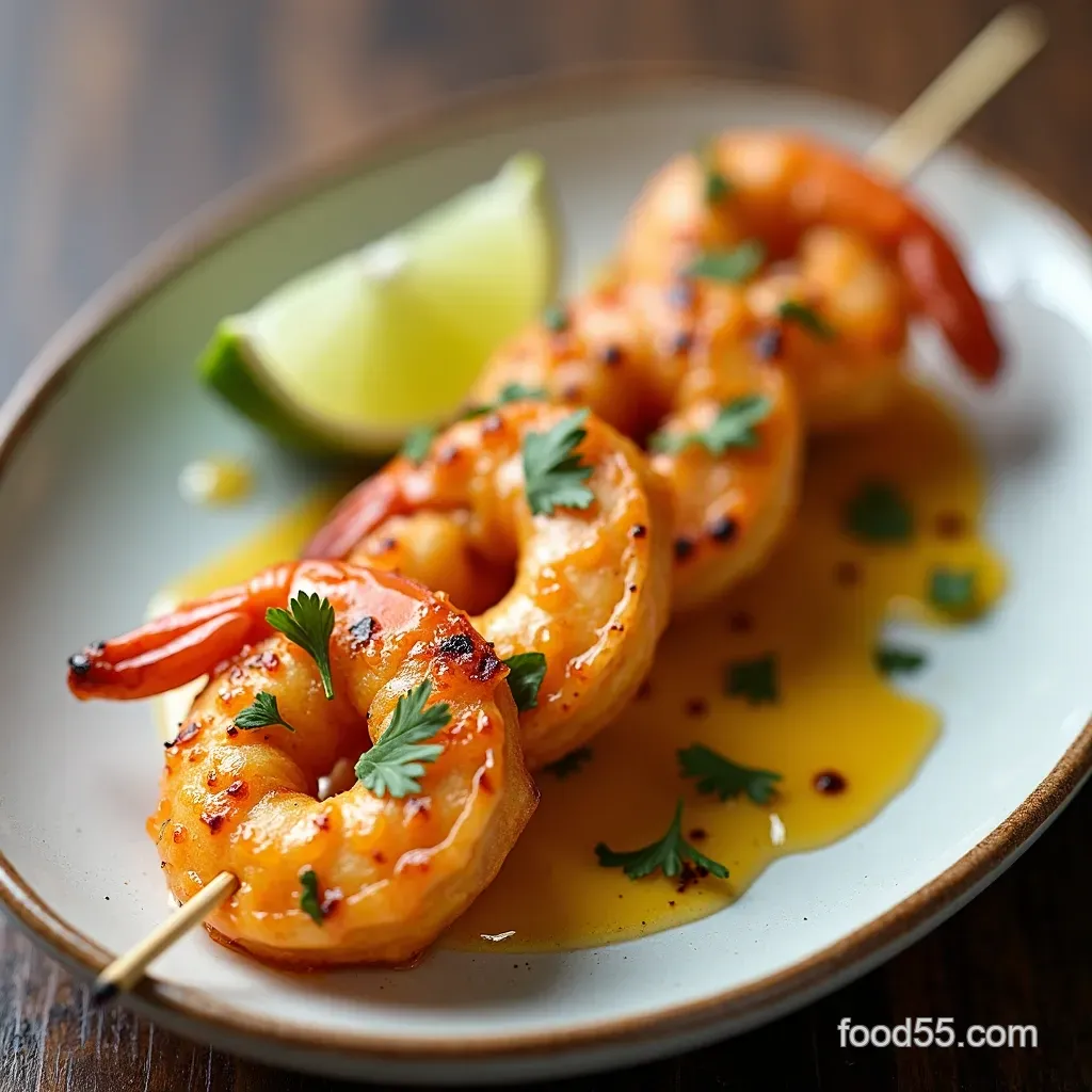 Golden Glow Coconut Red Curry Shrimp Skewers with Lime Drizzle
