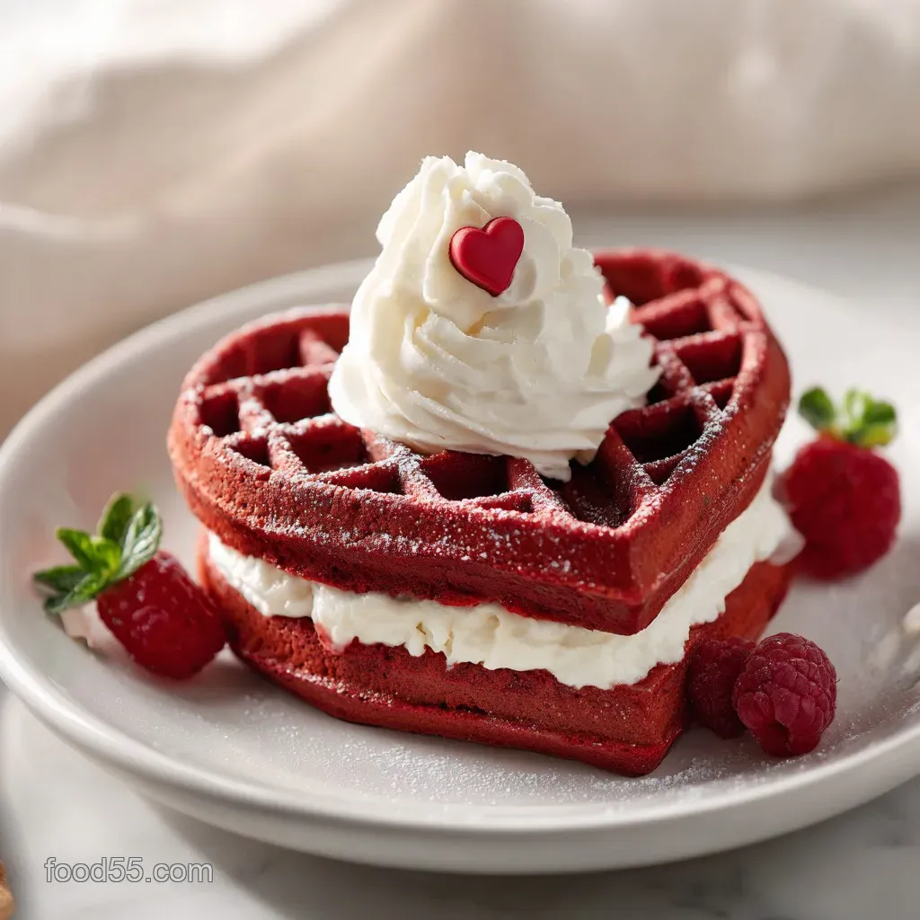 Heart shaped red velvet waffles are the perfect centerpiece. Supplement with fresh fruit, whipped cream, and a savory option like mini quiches or bacon strips to balance the richness.