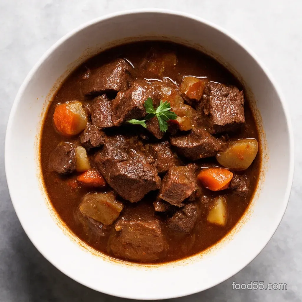 Brown meat in batches. That creates fond. Don’t overcrowd the pan. Add potatoes later if you like firmer veg. Use chuck roast for melt-in-your-mouth texture.