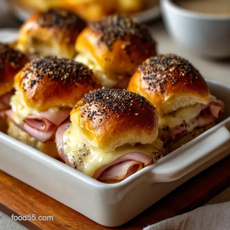 - Irresistible Baked Ham and Swiss Sliders with Savory Poppy Seed Glaze