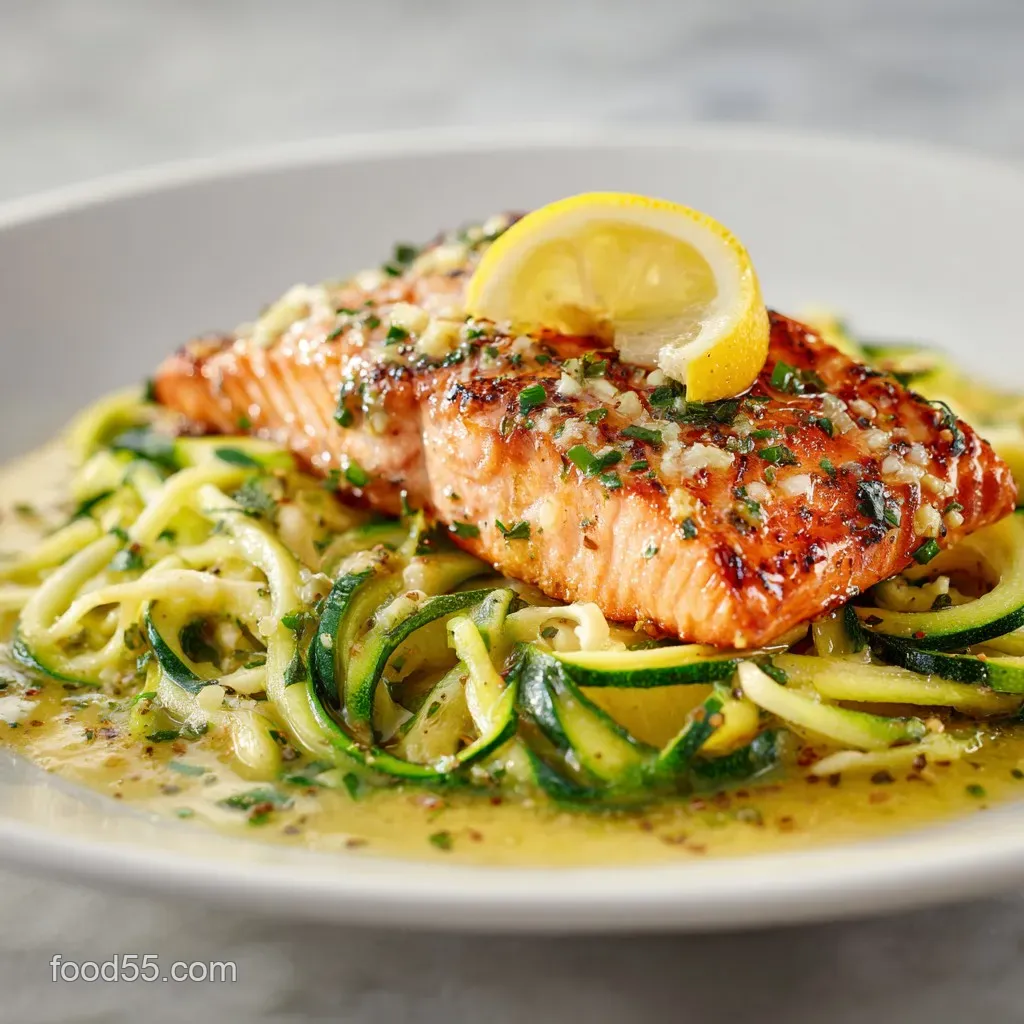 - 25Min Easy Lemon Garlic Butter Salmon with Zucchini Noodles — Get buttery crisp Lemon Garlic Butter Salmon in a single skillet This speedy lowcarb dinner idea uses fresh zucchini noodles to soak up the luxurious sauce...