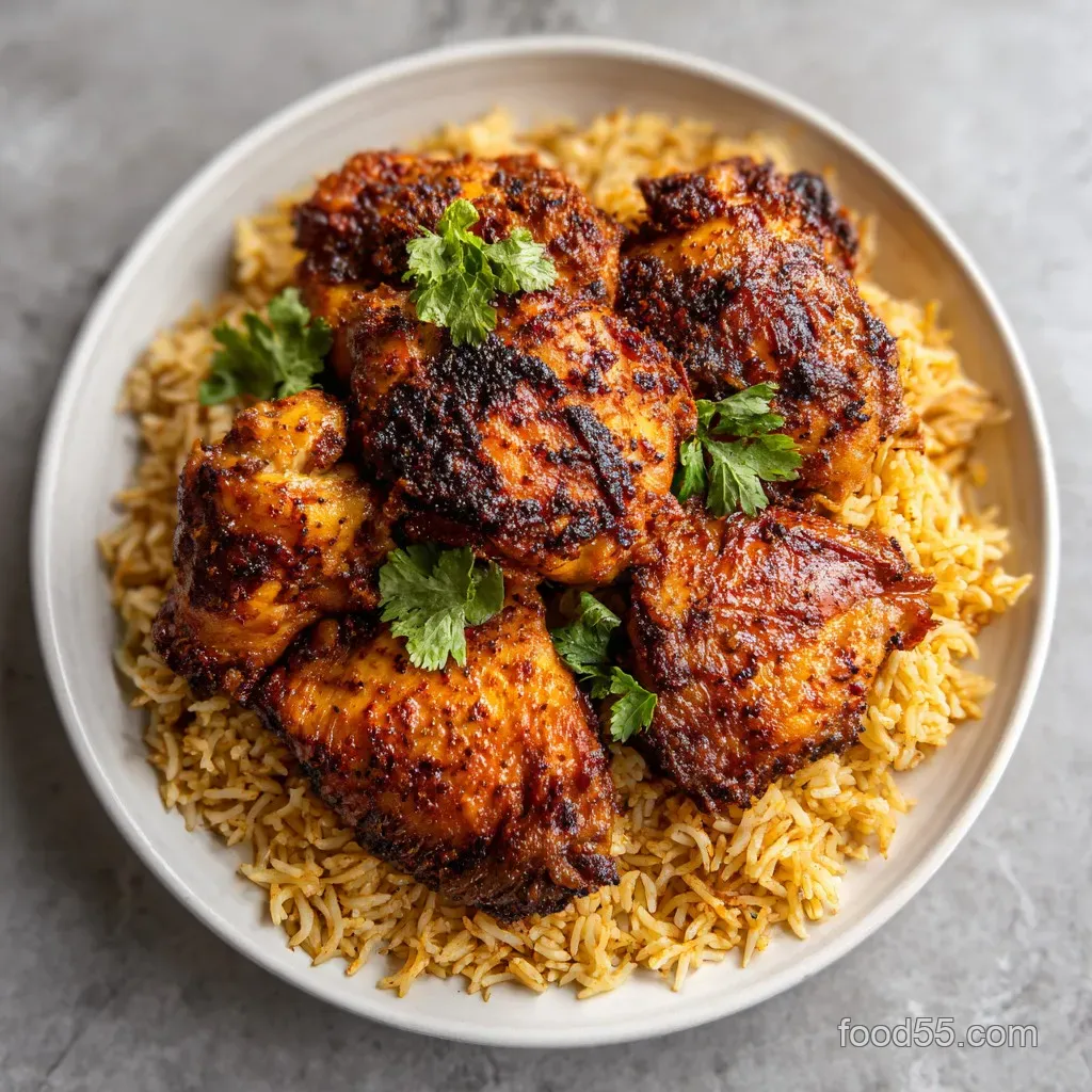 - Flavor/Texture Hook: Shatter crisp chicken skin and fluffy, aromatic grains