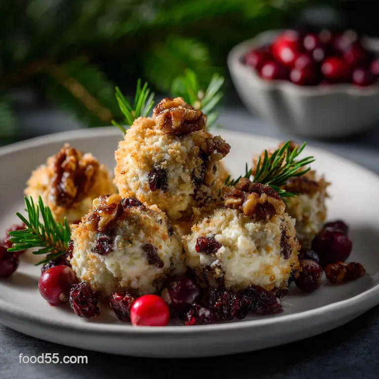 - Dredge each sphere through the nut and fruit mixture until the cheese is completely obscured by the festive crust.