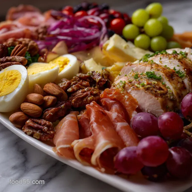 Replace the 2 cups assorted crackers with cucumber rounds and rice based crisps. The cucumber provides a refreshing "aqueous" crunch that works beautifully with the 4 oz Goat Cheese. Alongside these meats, a classic Deviled Eggs Recipe adds that essential creamy contrast for those skipping grains.