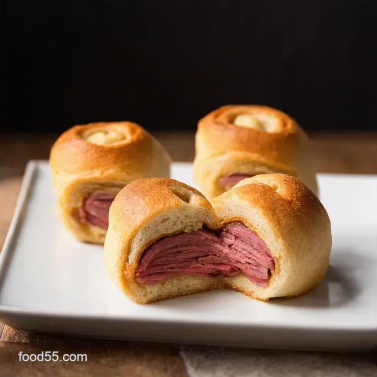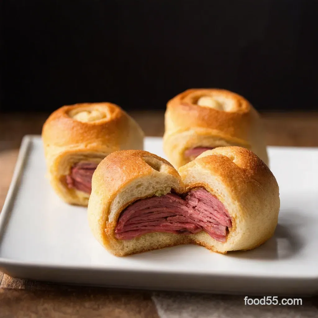 They’re tasty but relatively rich: the recipe estimates around 675 kcal per serving (4 pinwheels) and a high sodium level (roughly 1,200 1,500 mg) because of corned beef and sauerkraut.