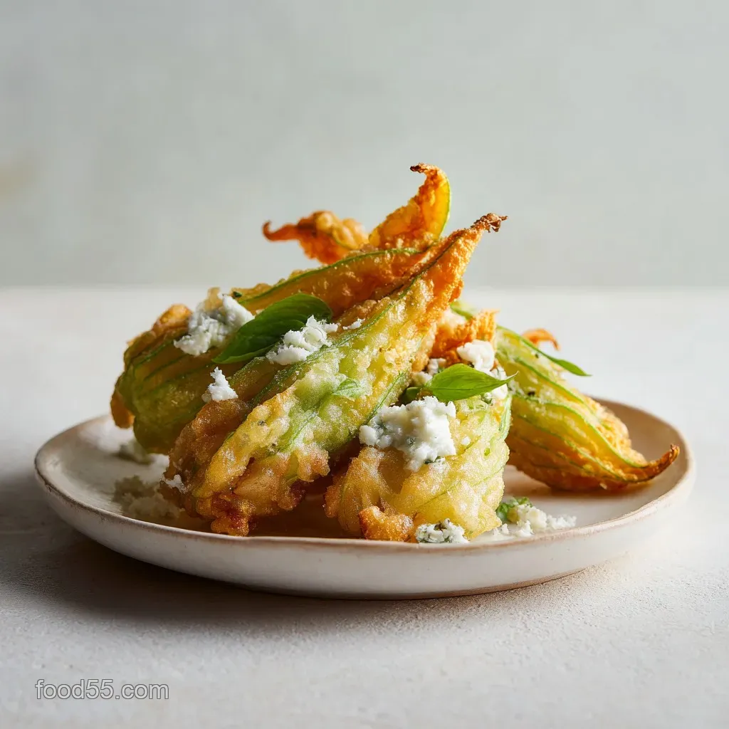 You can stuff the blossoms up to 4 hours in advance; place them gently in an airtight container and keep them chilled until ready to fry. Fried blossoms are truly best eaten immediately, but if you must save leftovers, reheat them briefly in a 350°F (175°C) oven or toaster oven until crisp, avoiding the microwave entirely.