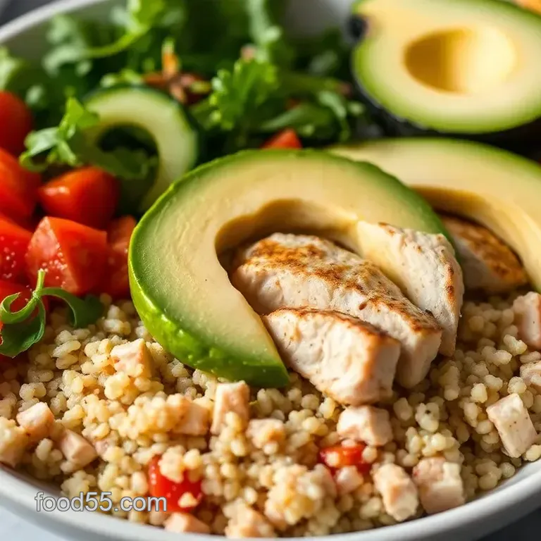 Start with a heaping portion of that fluffy quinoa as your base. layer your grilled chicken on one side, and then artfully fan out those creamy avocado slices right next to it.