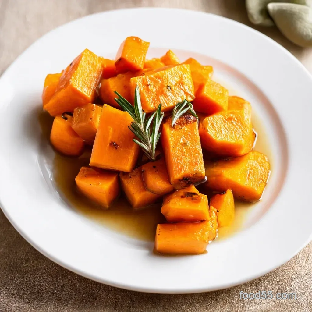 Roasted Butternut Squash with Rosemary Pecans and Maplehoney Glaze