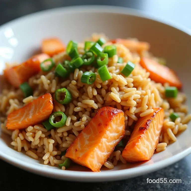 Origin and vibe It’s inspired by classic fried rice, but the salmon lifts it into a cozy, modern bowl. Think salmon rice bowl with scallions, not a heavy casserole.