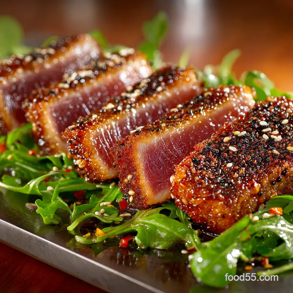 It’s also a Toasted Sesame Crusted Tuna Steak vibe. If you like sushi textures, try the Sushi grade Tuna Seared Rare Recipe route.