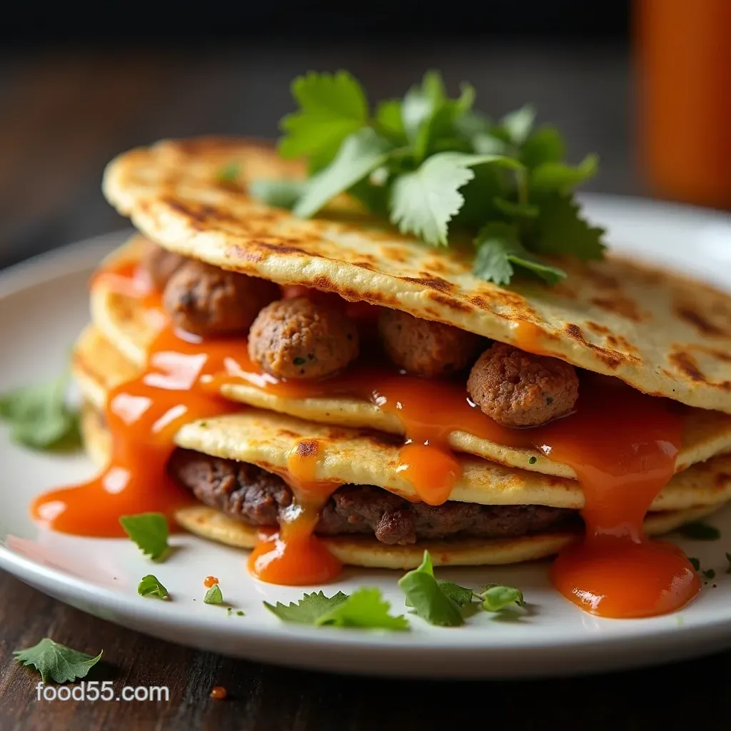Now for the satisfying part: layering! Lay four tortillas flat. On one half of each tortilla, create a layered sandwich: start with a light sprinkling of reduced fat shredded Cheddar or Monterey Jack (about ¼ cup per quesadilla), then evenly distribute one-quarter of your Buffalo burger filling over the cheese, and finally, top that filling with another small sprinkle of cheese.