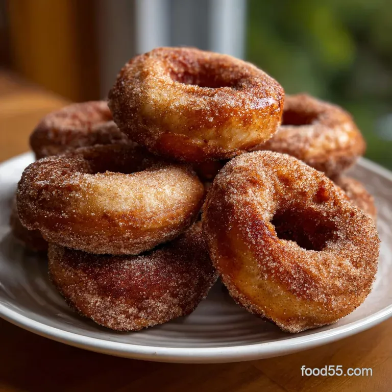 The small centers cut out from the main dough circles make excellent donut holes! Air fry them alongside the larger donuts, adjusting the time slightly; they usually require only about 3 to 4 minutes at 350°F. Coat them quickly in the cinnamon sugar while still hot.