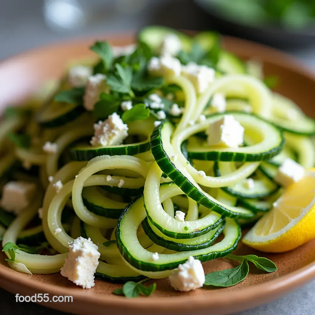 Spiralized Greek Cucumber Salad with Lemon Herbs Feta