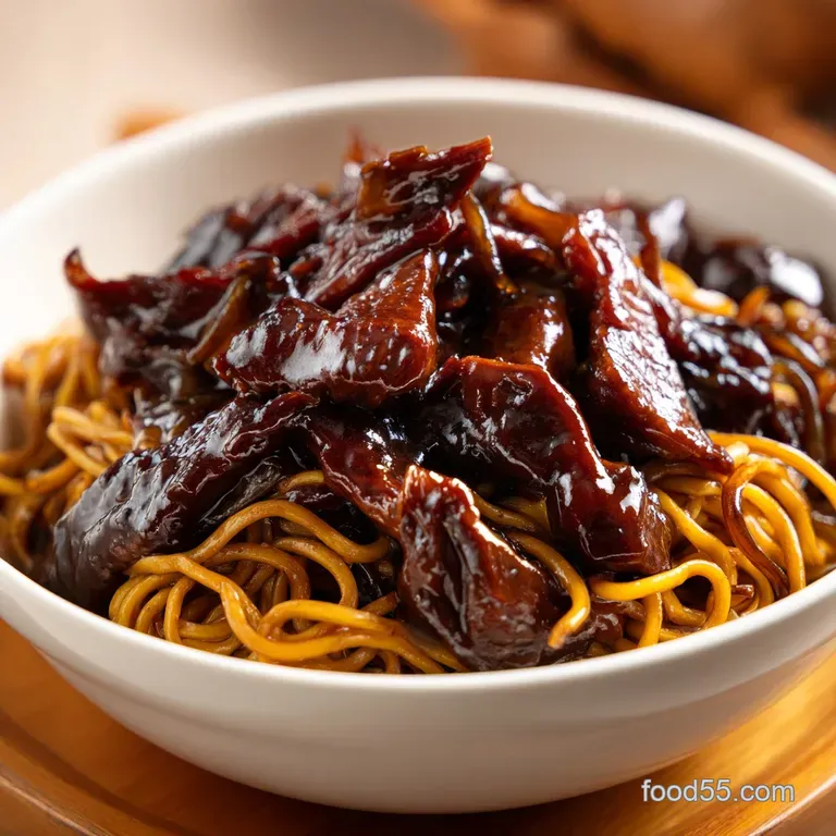 To really lean into the artistic side of this dish, focus on the plating. Because the noodles and beef are dark and glossy, you need a bright contrast to make the dish pop.