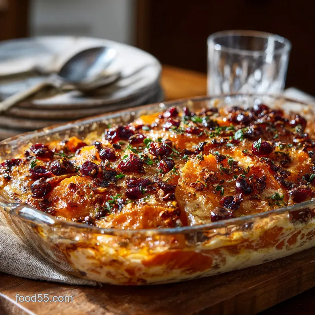Sweet Potato Cranberry Gratin: Maple-Kissed Casserole with Pecan Crunch