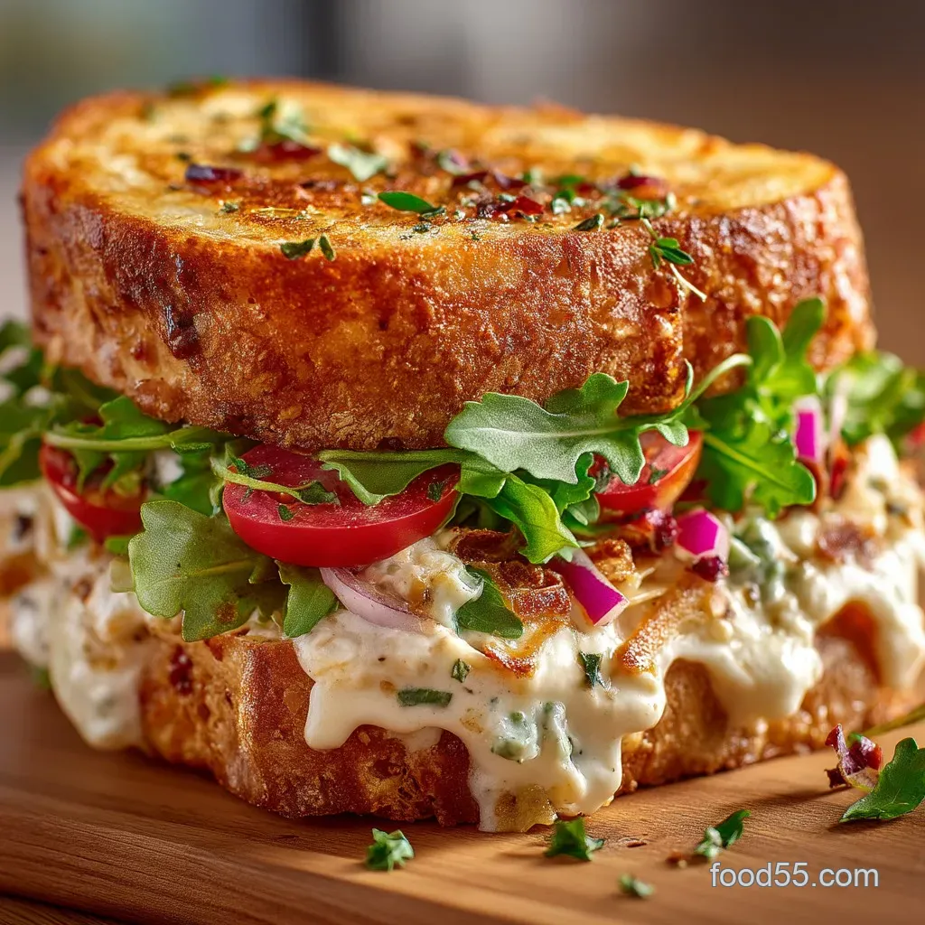 If you are serving the substantial sandwiches to guests, slicing them diagonally right before serving helps showcase the vibrant layers and makes them easier to handle. Serve immediately while the base remains warm and the salad is cold and crisp.