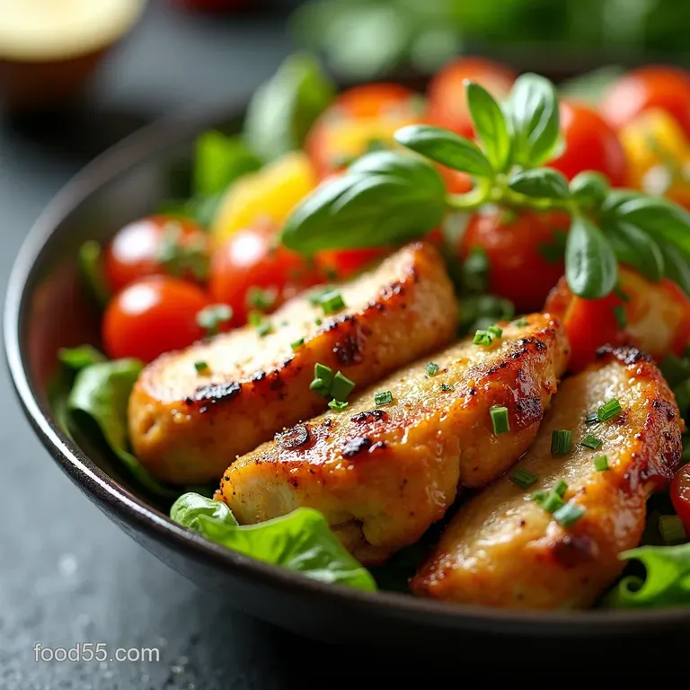 Visual cues: chicken skin golden. Quinoa shows tiny white tails. Veggies get charred edges. Dressing should be glossy and pourable.