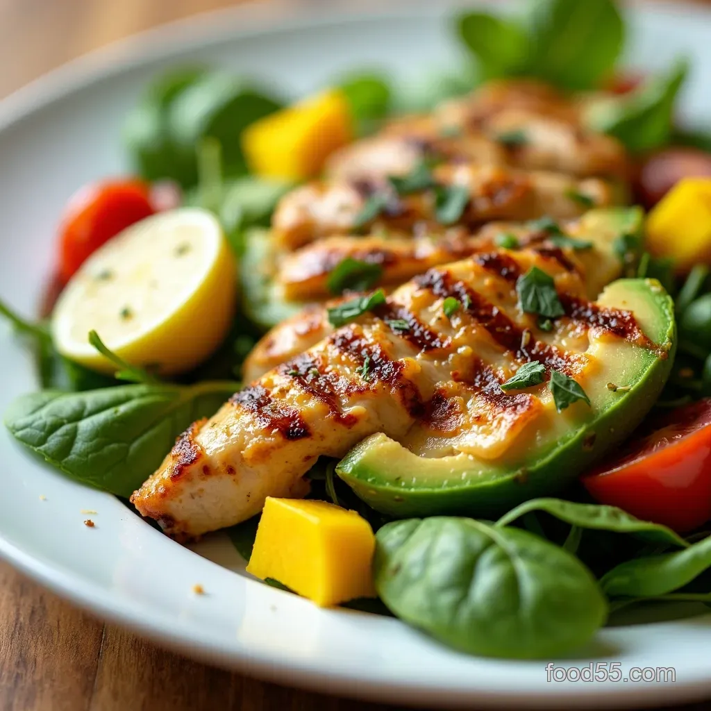 For pretty plating, arrange greens in a shallow bowl. Fan sliced chicken across the top. Nestle avocado slices and mango cubes like little jewels.