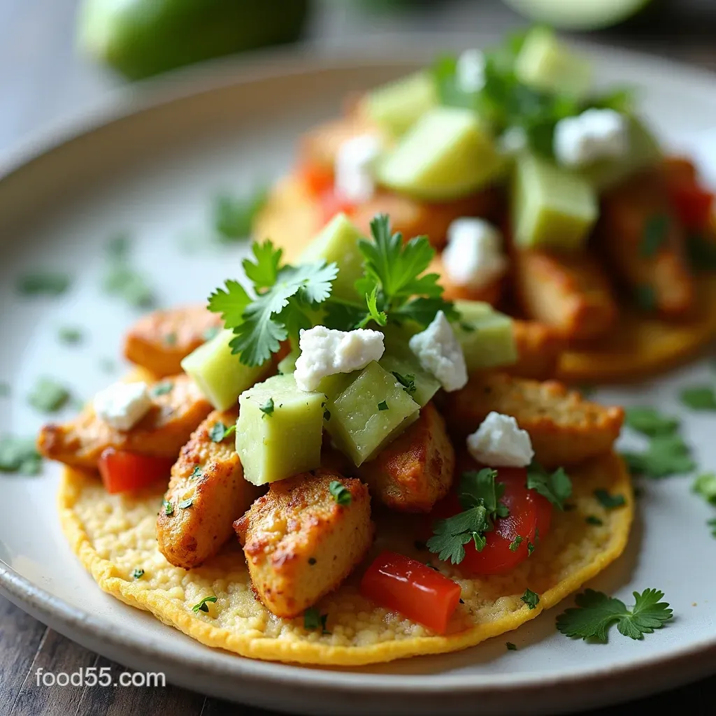 While tacos are wonderful, the structural integrity of a tostada offers a superior vehicle for saucy toppings. The Crispy Corn Tostadas act as a sturdy, edible platter, ensuring that the richly sauced chicken doesn't compromise the vessel before it reaches your mouth.